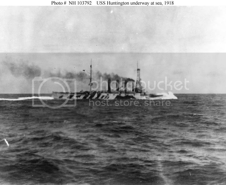 Subsequently, the cruiser returned to the important duty of escorting convoys of troops and supplies to Europe, making nine such voyages to Europe and back between the 19th of February and 13th of November 1918. In addition, Huntington made three coastal convoy passages from New York to Hampton Roads. She entered Brooklyn Navy Yard on the17th of November 1918 for conversion to a troop transport.