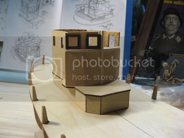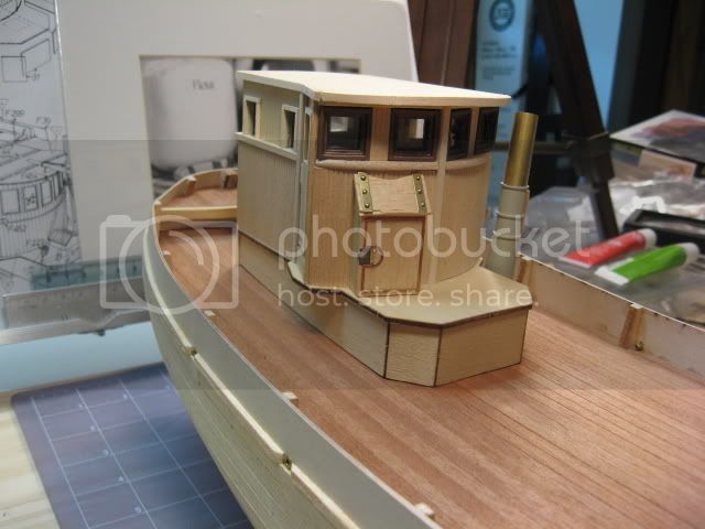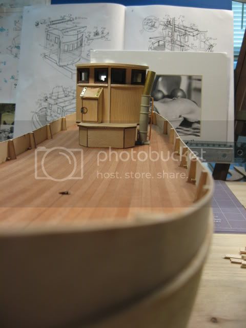 The cabin door problem has been solved, it'll be opening out towards the bow. Opening inward dosen't work. The bridge, controls and wheel are in the way of the arc of the sweep.