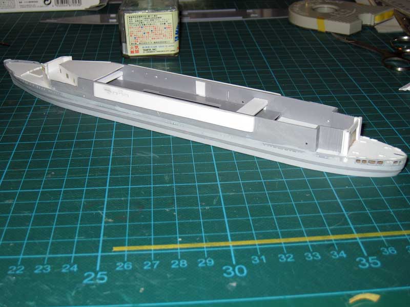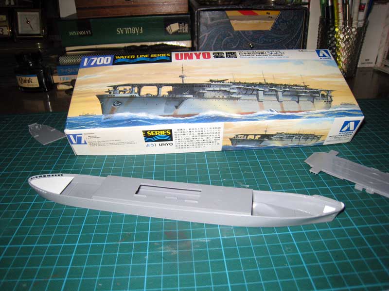 This is one of my three current projects, the Aoshima 1/700 CVE Unyo.