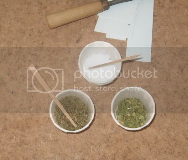 I´m going to use some diluted white glue, very small pebbles (sand might just do the trick, too) and some crushed aromatic herbs (used to cook and add some flavour).