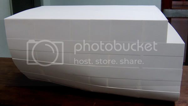 I advanced a little bit more. The hull is now "sealed", and only needs rivet detail (hundreds of them...