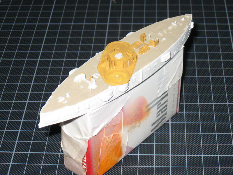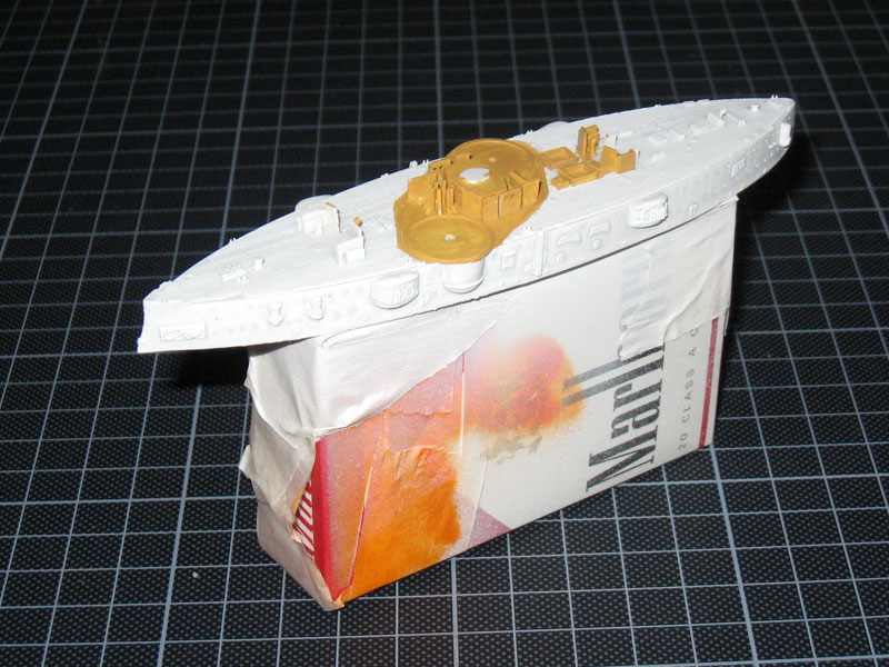 I have not painted the white hull, since some of the weathering steps are a little messy