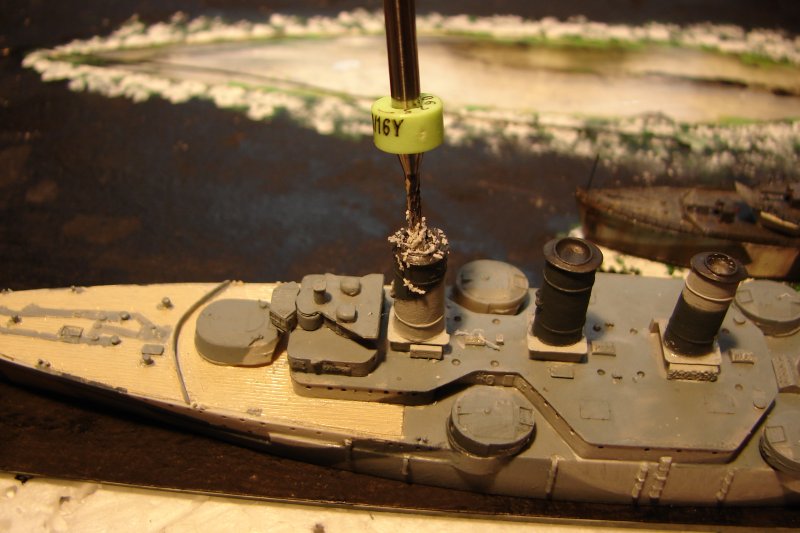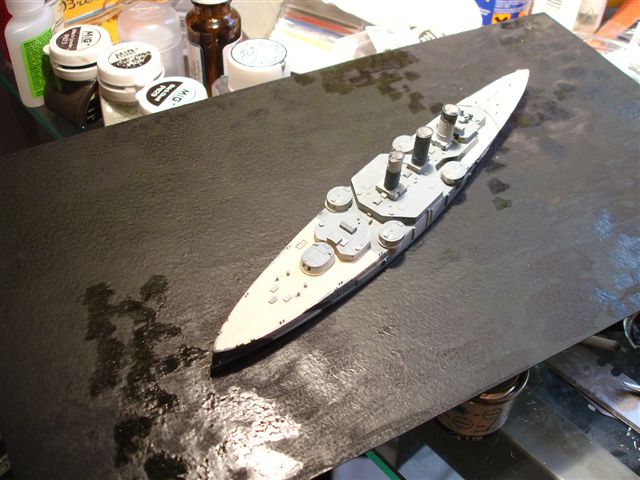 When I put on the second coat I will also cover the void where the ship goes and therefore cement the ship in place, but this will come later. The ship as shown on the base is a dry fit.
