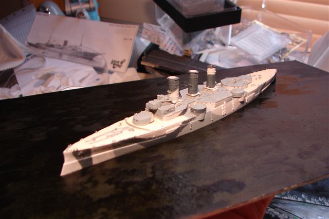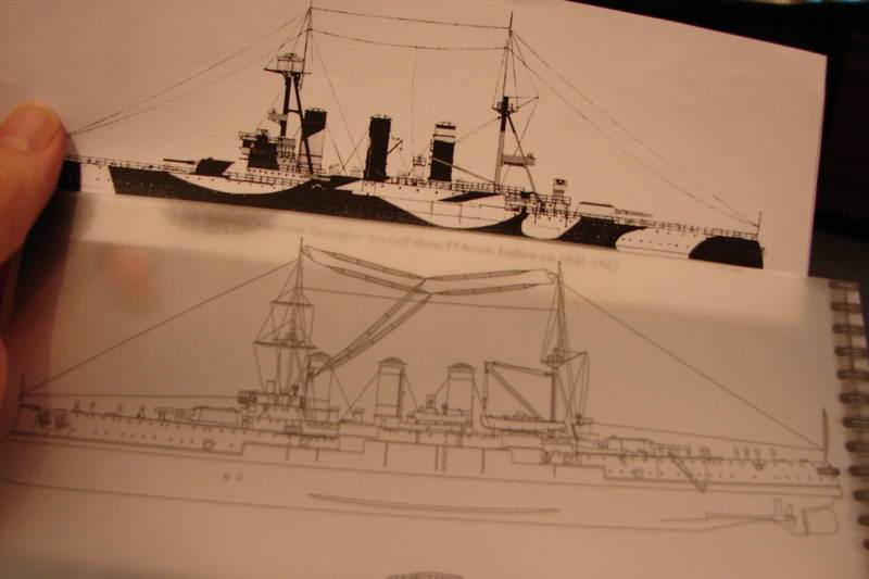 My next phase is the update from WW1 armoured cruiser to WW2 full camo update and conversion. I have the pictures to hand, and I will shortly be doing an overlay compariosn with reference to the "walkaround pictures". again not an easy phase other than going to see the ship myself with pencil paper and tape measure.