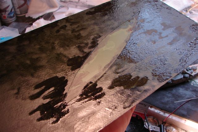 Putting the hull too one side, and continuing with the water presentation, I will now develop the texture of the seascape with diluted Tamiya black acrylic.
