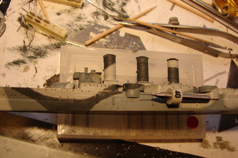 And so, nothing quite lines up as you think it should and as I progress with the build, I must now make the comparrison of the WW1 Averoff with the WW2 camo version.