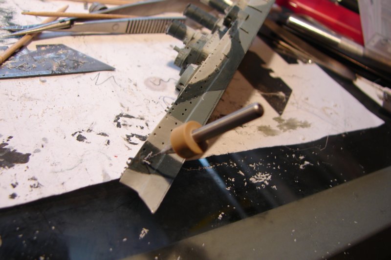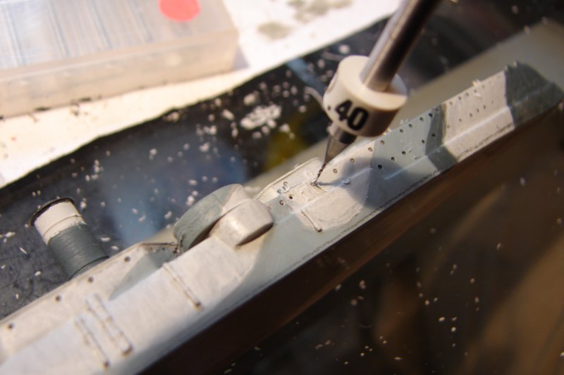 The portholes on the kit are acceptable but to add the extra touch, I always drill them out as well. I have an array of drill diameters and they are mainly finger drills as shown. The art is not to twist them in too tight or vigorously and that way they don't break. If they do, they are difficult to remove.