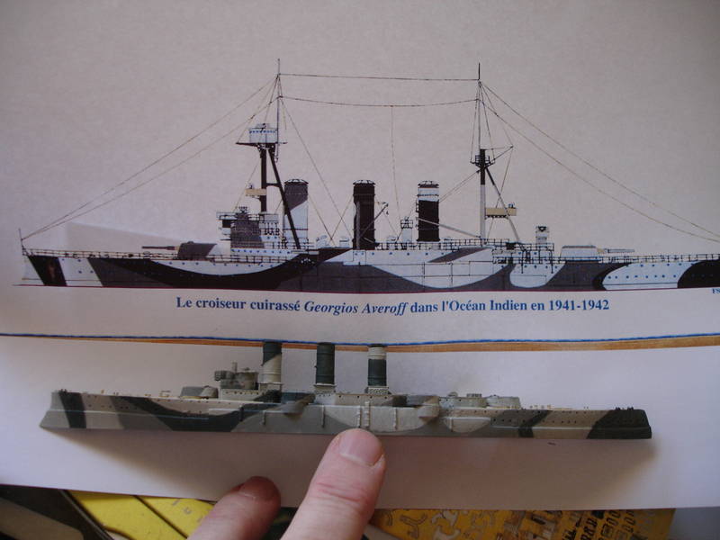 Thanks to Rui Matos, and his vast knowledge of all things maritime, I now have a camo version of the Averoff. Rob Kernaghan says that the scheme would have been the same on both sides, and based in Alexandria, would have been British paints.