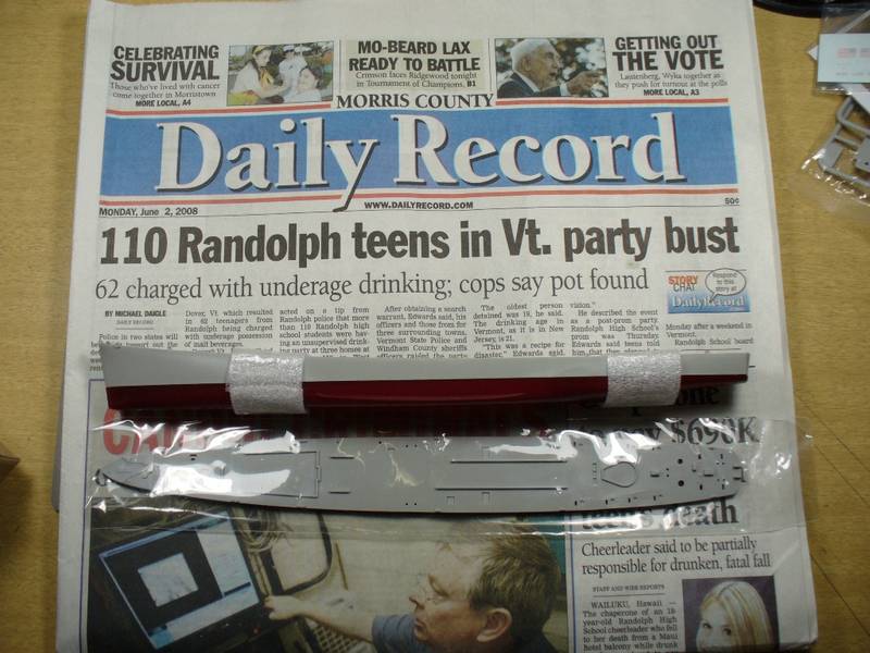 Decided to go for the waterline version. I glued the bottom plate on, CAed a few ounces of lead shot into the hull to add a little weight, then glued on the deck. I figured the weight would help me not knock it over too easily as I progressed along the build. I really don't know if anyone else does this, but it made sense to me.
