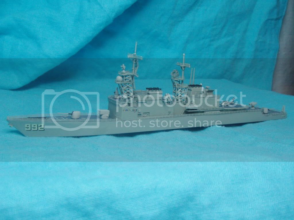 She's finally done!  Some days I didn't think I'd ever finish.  I will admit that I learned a lot during this build.  Mostly what not to do.  (Like don't wait 10 yeast before starting a kit; the decals will not survive.  Photoetch isn't the enemy, but it isn't exactly your friend either.  Super glue will only adhear instantly if the part is in the wrong location or stuck to something it isn't supposed to be attached to: like your finger, the table, or a tool.)  Is it perfect?  No.  Is it a contest winner?  No, but it's mine and I'm happy with the results for my first ever 1/700 ship.