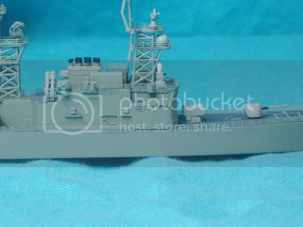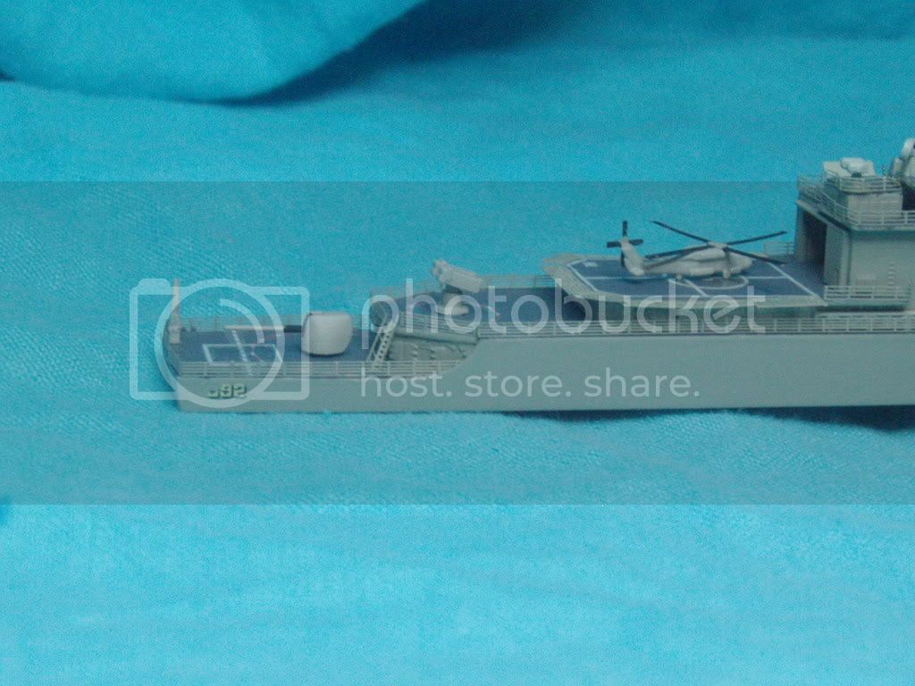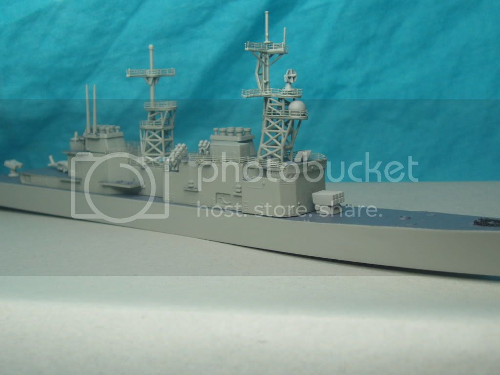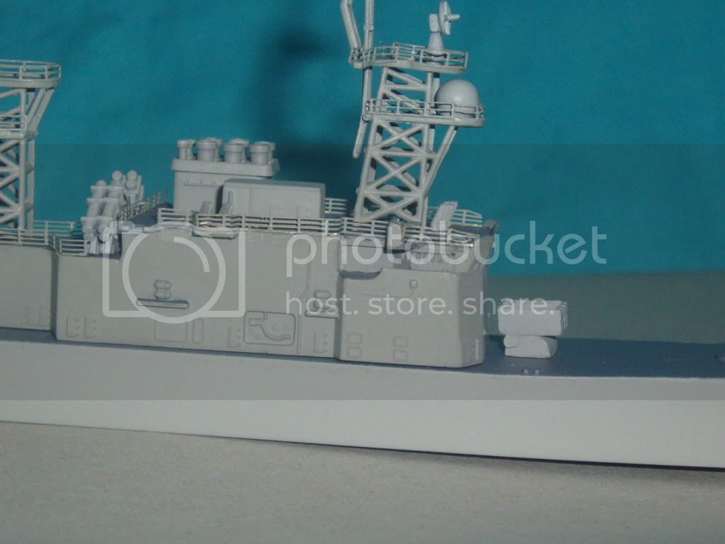 The base kit was from Arii; the photoetch from Flagship Models; the anchor chian from Builders in Scale; deck decals (warning circles & landing pad stripes), Fruit Salad & "E"s, and ASROC launcher from JAG Collective.