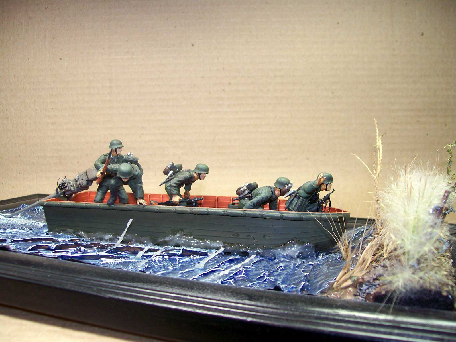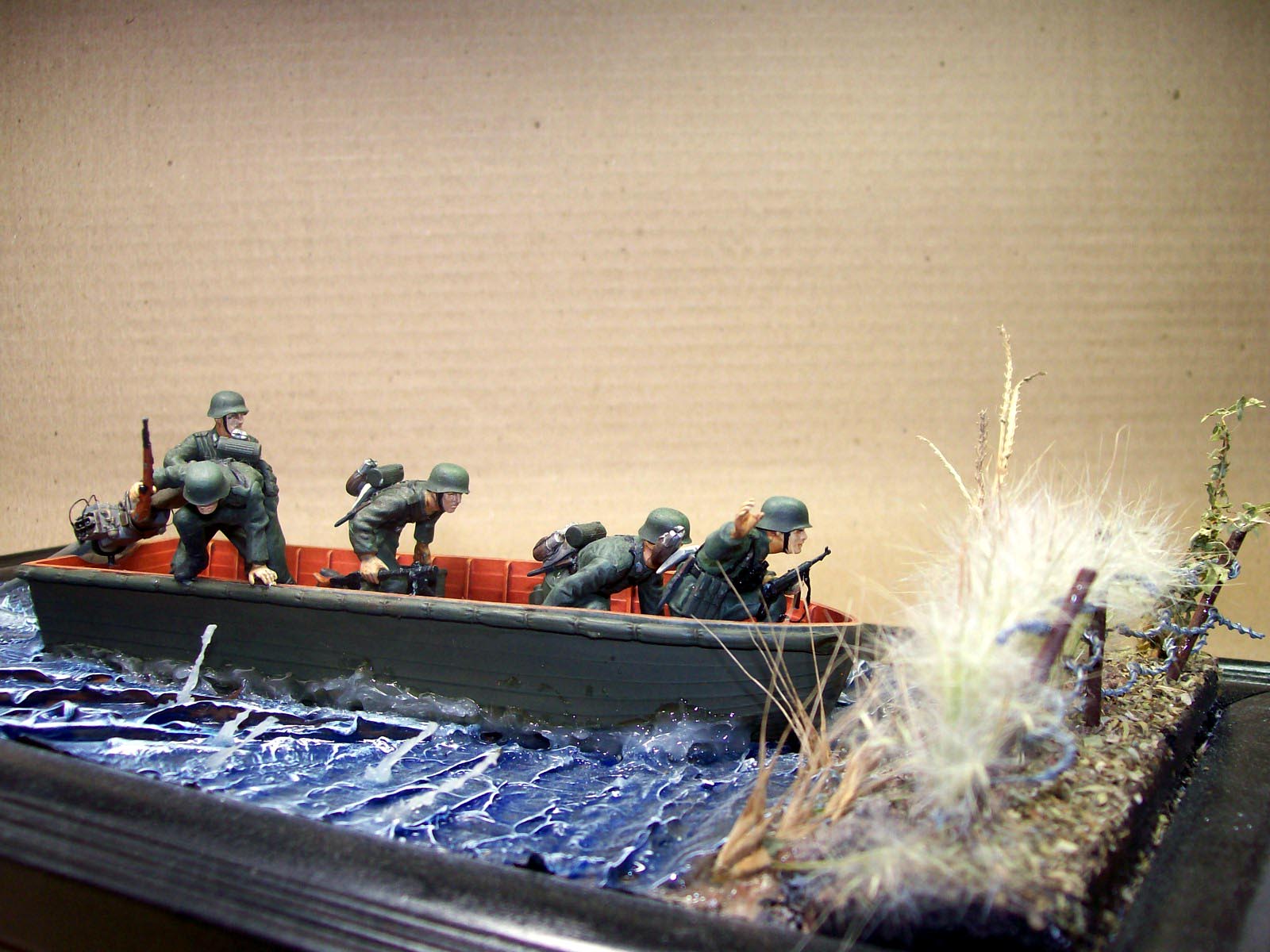 I did modify his idea for artillery splashes to create the bullet strikes using paint brush bristles dragged through clear silicone caulk.