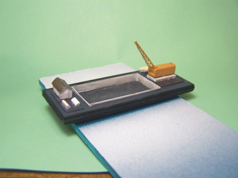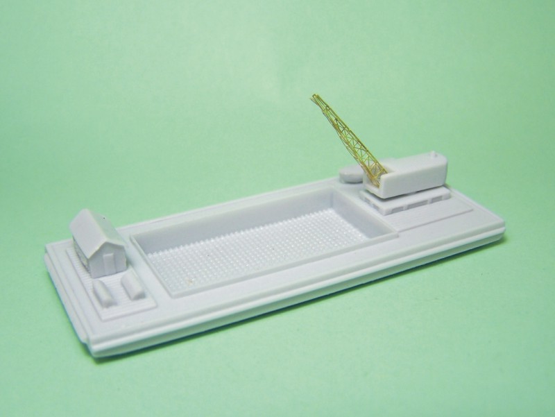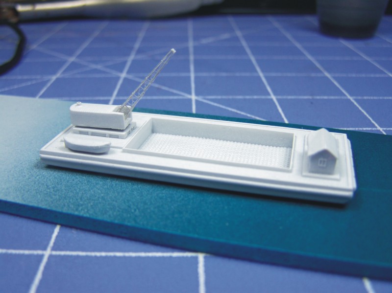 Crane body is glued on the lighter and photo etch boom glued in place. Harry has a very nice resin boom for this crane, but it looks a little to fragile for my big fingers. I used an antenna mast from an Essex kit.