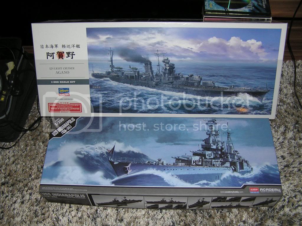 Let me share with You the marvelous look at these two boxes that arrived during the last few days. I wanted the Agano for more than a Year, ever since I finished the I-58 and was fascinated by the Japanese ship design. Its a bit expensive - 100 Euro for a 7000 ton light Cruiser, but once I opened the box I had no regrets. I also had to get the Indy. Its the best price/value kit of a ship I have seen so far.