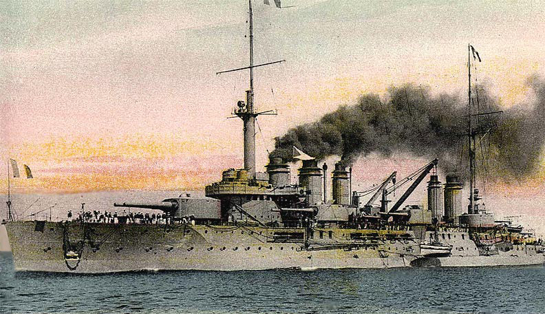 The ship was less than 10 years old at the time of its loss, but already outclassed by the newer HMS Dreadnought design being introduced by the British. The 19,000-tonne, 150m-long vessel was carrying over 1,000 men when it was attacked by Germany's U-64 submarine at 1317 on 18 March, 1917. Patrol boats and a destroyer managed to save most of those onboard.