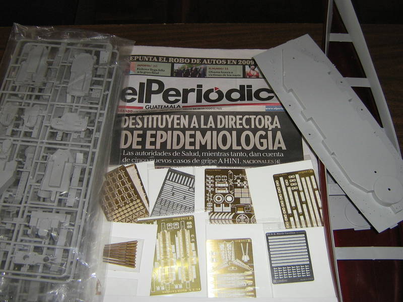Thi is a picture with the model's parts and PE aroud a local newspaper (sorry if it is in Spanish, but hard to get a newspaper written in English around here):
