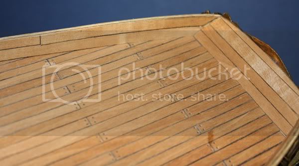 You decking is looking really nice. Unless you'er planning to countersink all of those nail heads( Whew!!!!!!) Its probably best leaving them off. I read some where,that instead of using nail heads, They used a pointed tool to make the impressions in the decking, then sanded them lightly. when varnished they look like dowelled decking. Might want to give that a try if you feel real ambitious. !!!!  lol  . Keep the posts comeing