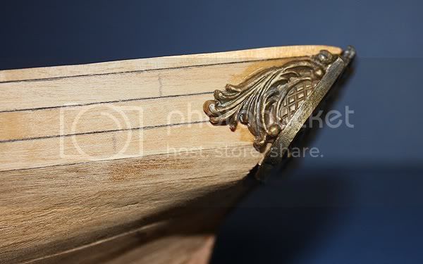Hi guys i have a small update in the first pic you can see i installed both cap rails i made out of walnut sheet which i cut out with a small saw blade in my dremel in the second pic you can see the finished cap rail in thr forground and the unfinished rail in the backround in it's raw state, next i will finish off the other rail and add a cap to the transome and maybe add a few parts to the bulwarks.