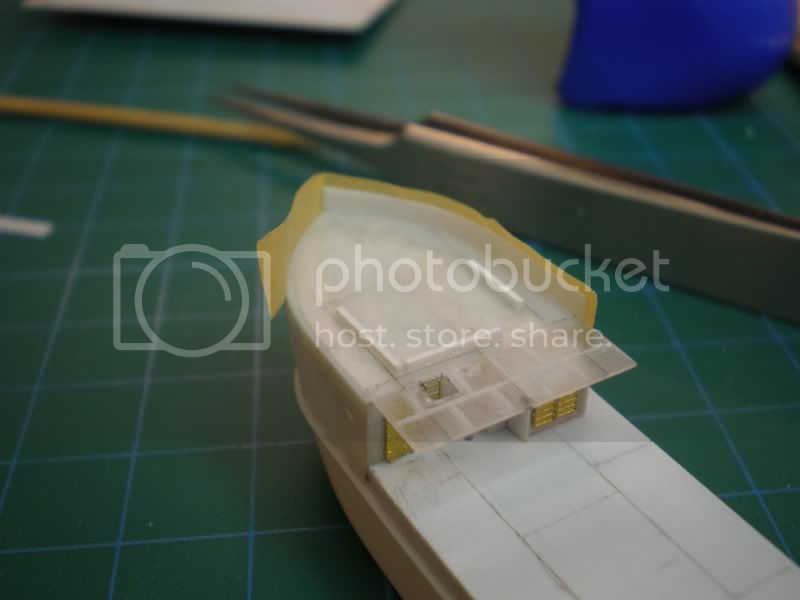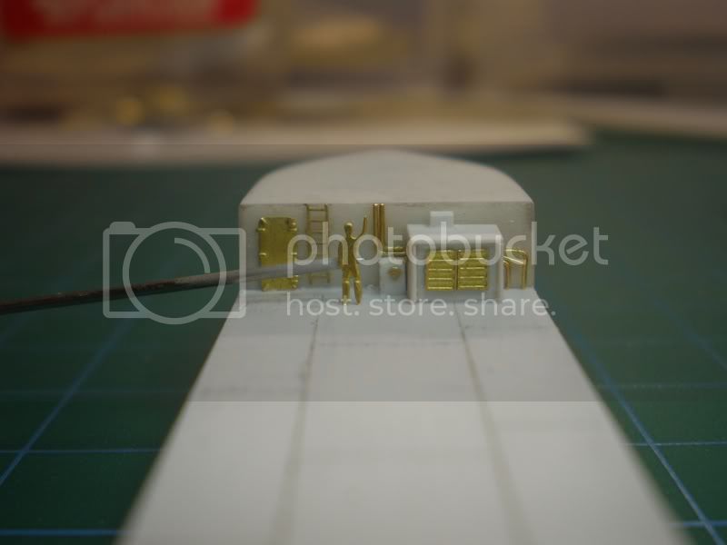 With the main measurements at hand I went to make a sheet “sandwich” representing the main 2 decks: focsle and weather deck. I took a scan of my overhead layout sketch, printed it on a regular sticker, which was then applied to the sandwich.