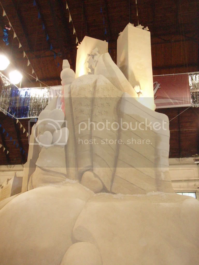So why am I posting this on a ship modeling board? Well, this year, the Sand Sculpture was something that fits in nicely with ship modeling, and is near & dear in the hearts of all New Yorkers. The main object of the Sand Sculpture in the USS New York (LPD-21). The actual ship is scheduled for commissioning on 4 NOV 09.