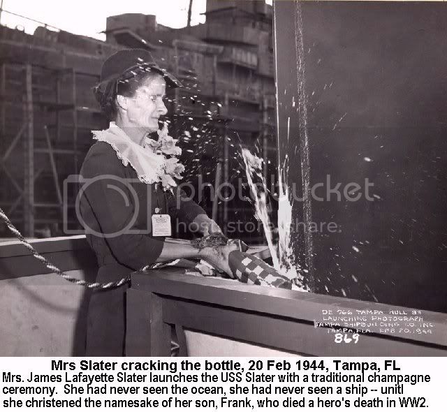 The Slater was used for 2 weeks last August for the film. My family (my father is deceased) continues to go to the reunions and we just got back from Albany yesterday after the 24th annual reunion. 10 remaining crew of the original 216 attended along with approx. 40 family members.