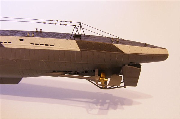 Here is my Revell 1/144th scale Type VII-D Minenleger. It has the Griffon models detail set. Real copper braided antenna wiring. I scraped and thinned the prop blades for a more scale appearance.