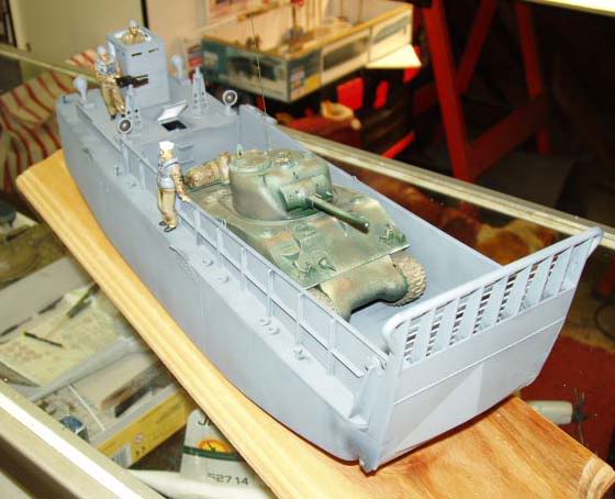 1/35th scale Trumpeteer LCM with Italeri 1/35th scale Sherman and 1/35th scale Trumpeteer LCM crew, plus bits and peices from Verlinden and some resin stuff....