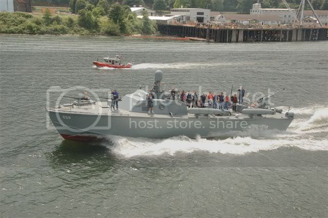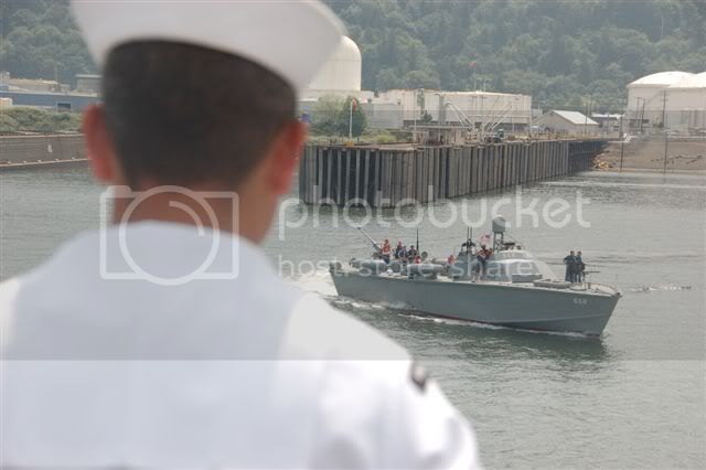 From the photos you can see the retired Navy crew members offering a hand salute to the DDG USS Shoup, en-route to Portland.