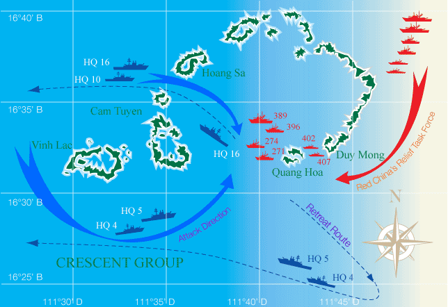 In the early morning of January 19, 1974, Vietnamese troops from HQ-5 landed on Duncan Island (Quang Ḥa in Vietnamese) and came under fire from Chinese troops. Three Vietnamese soldiers were killed and two others were injured. Outnumbered, the Vietnamese ground forces withdrew by landing craft, but their small fleet itself did not: instead, they drew up close to the Chinese ships in a tense standoff.