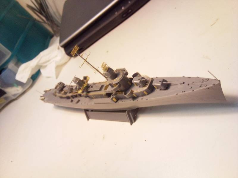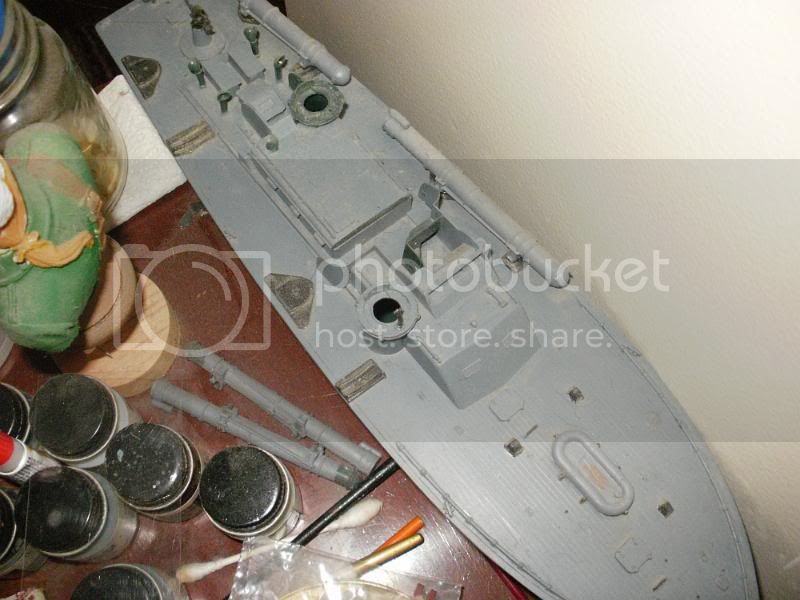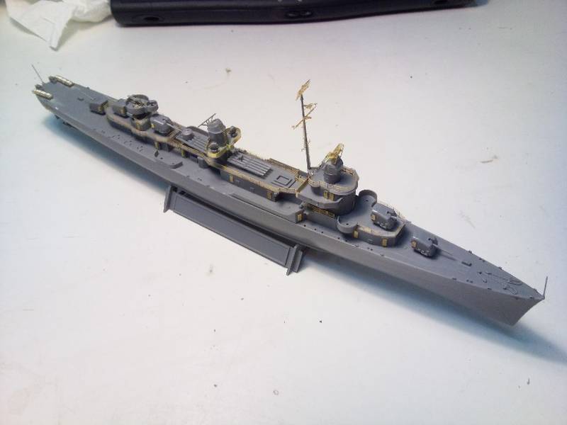 I have the perfect project going on for this, a Tamiya 1/350 Fletcher with GMM fittings. I first started it probably 10 years ago and restarted it mid June of this year so that would fit the time frame. Only problem is that I don't have any pics of before the restart, only as of yesterday before I slapped on a coat of hull red to the underside. Can I enter anyway? Can I, can I, can I?