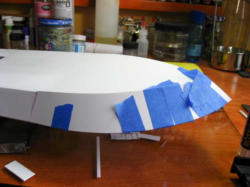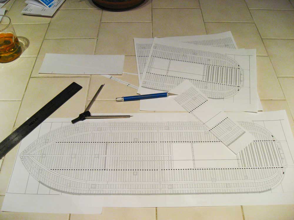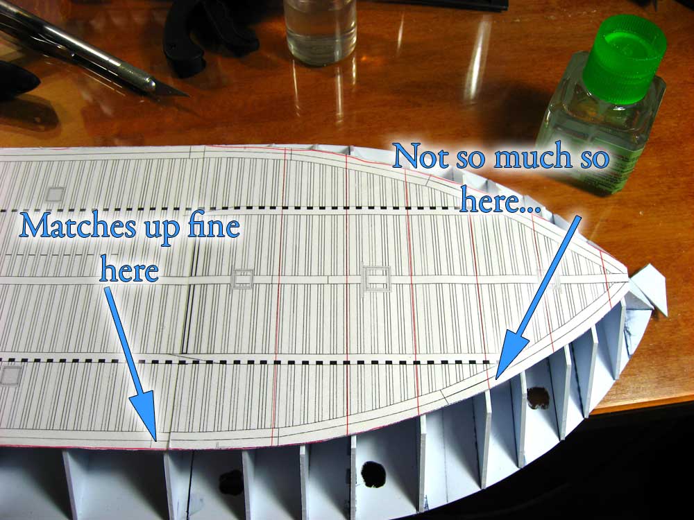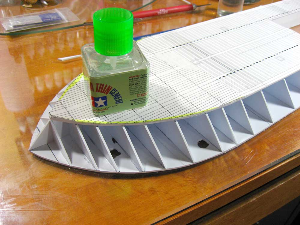 One of the sets of plans I had showed that EVERY angle on the hull was 45-degrees. As can be seen in the above image, that doesn't work out so well when you get to the forward and aft part of the hull. In retrospect I should have figured that out before hand, but oh well. I lost a few hours to marking the new frame angles, snapping off three of them aft and 8 of them forward, cutting them again, then attaching once more. Much better after all of that extra work: