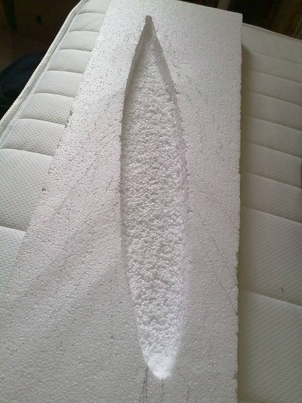 New project is underway and will be my first attempt at a seascape/diorama. This is the hole in the 'sea' that is awaiting a hull and a very messy buisness it was to cut out! Just ask my partner, she loved it as did the hoover!!