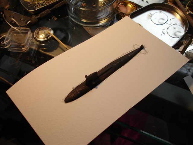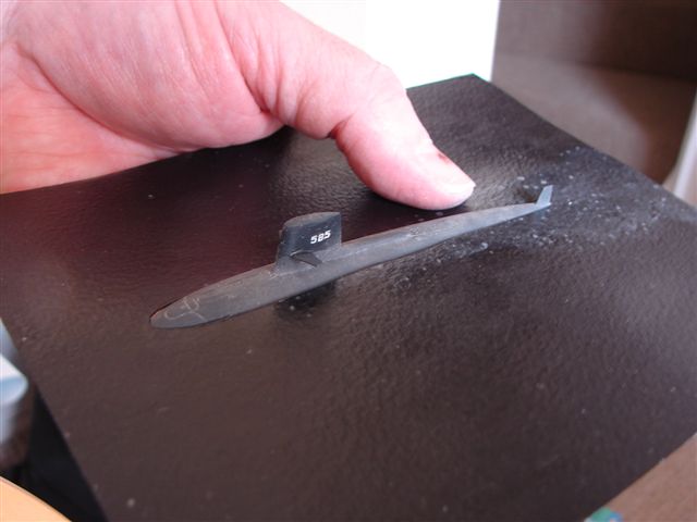 I have used the powders to weather the hul from the intense black it was before. I also glossed the conning tower ready for the transfers - the white numerals - if I can find some in my box of extra parts.
