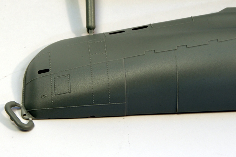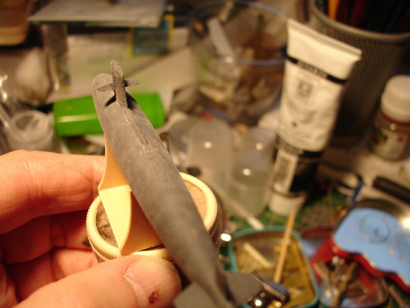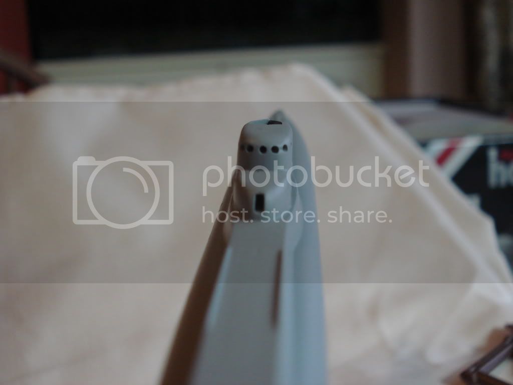 I also used US Navy open doors pe for the tower, and a couple of pe sailors to stand on the fin as per the box picture. I guess there must be some sort of saftey rope but I can't see that.