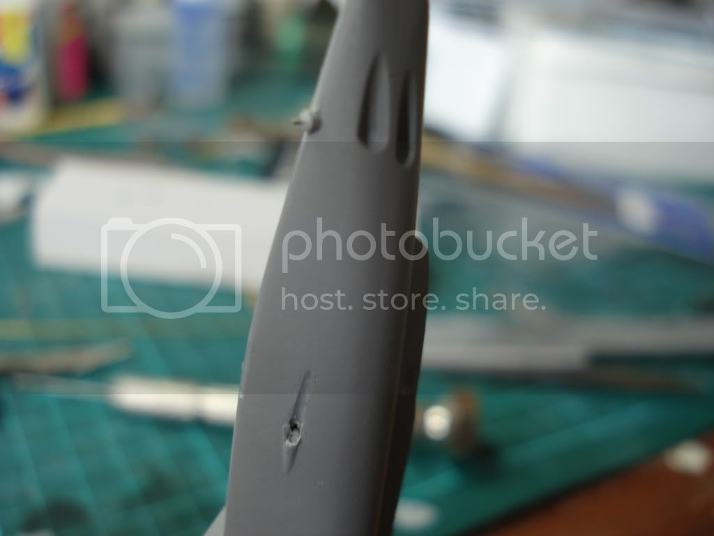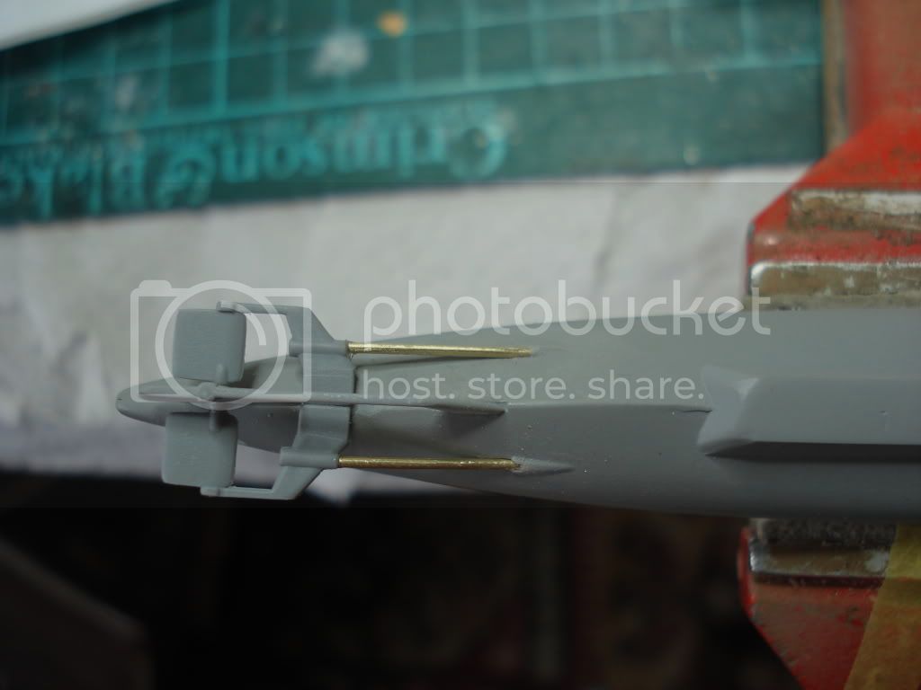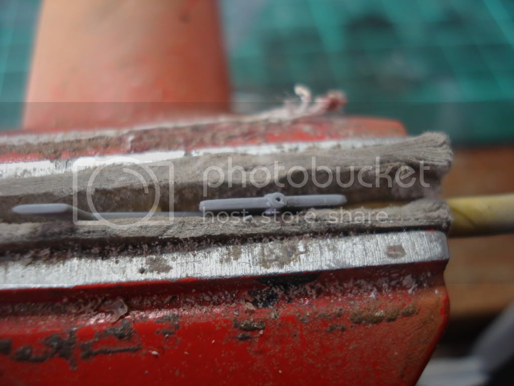 I then added 0.8mm brass rod for the prop shafts as the plastic ones were aweful and the one below snapped when I started cutting it of the sprue. (this is another new technique for me)