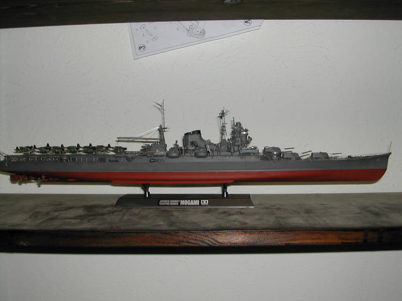 I'm at the photo phase for my Mogami.  Pretty much finished it.  I figured it to take a lot longer, but those Tamiya kits just seem to fall into place.  I've got a couple little finishing touches to do, then a photo or two for your enjoyment.  I highly recommend this kit.  A bit pricey, but if you look hard enough, you can get it cheaper.  I think I got mine for right at $100.