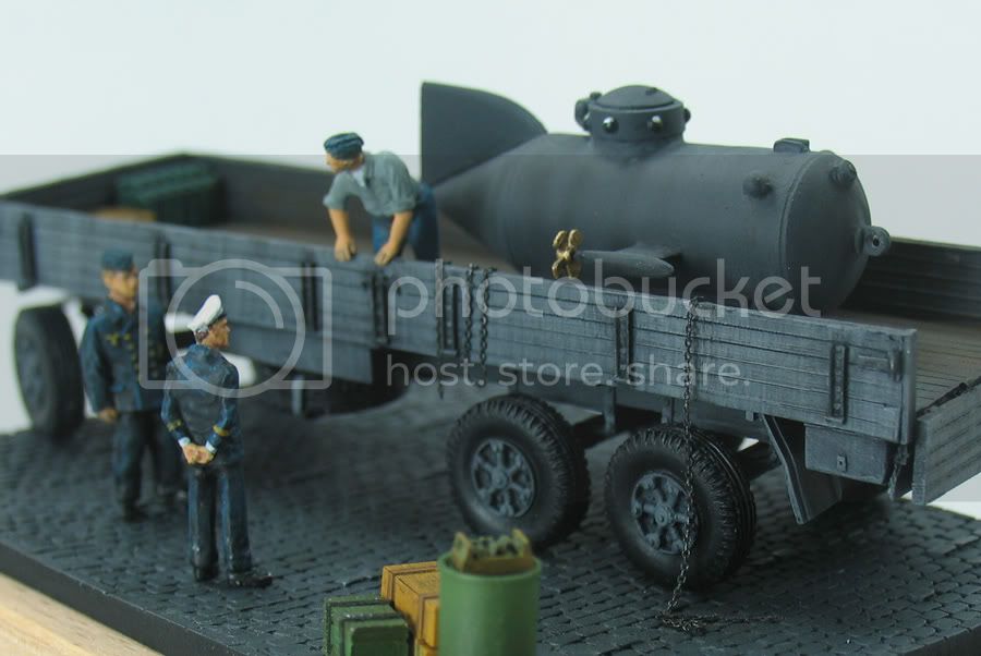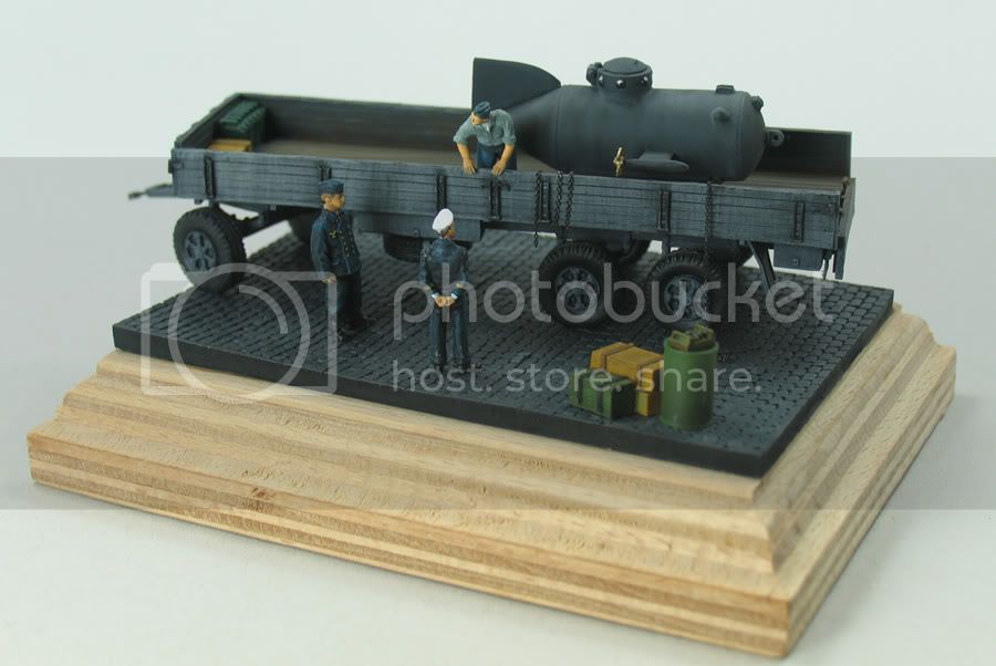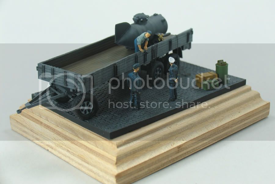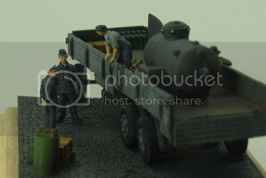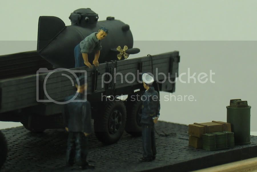 I am not sure, due to the small size of the base I would want to add much more, otherwise it could detract from the focus. This why I was thinking of the German officer from the Biber, scenario being German officer inspecting the craft, therefore it has been placed on a clear bit of waterfront.