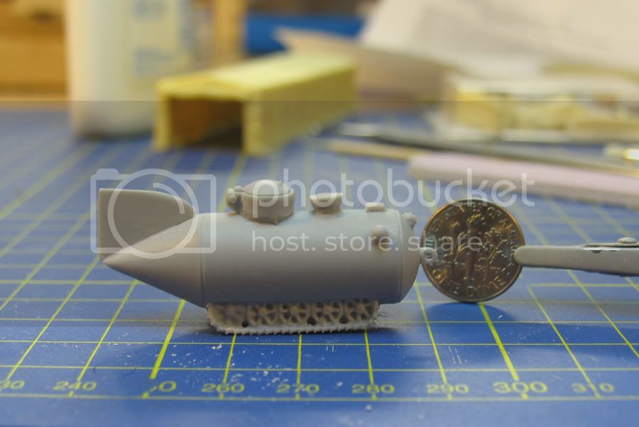 That's a tiny subject all right.  Too bad it's molded solid, as I think depicting a crewman trying to squeeze inside would be a perfect diorama!