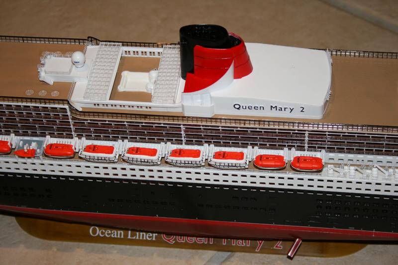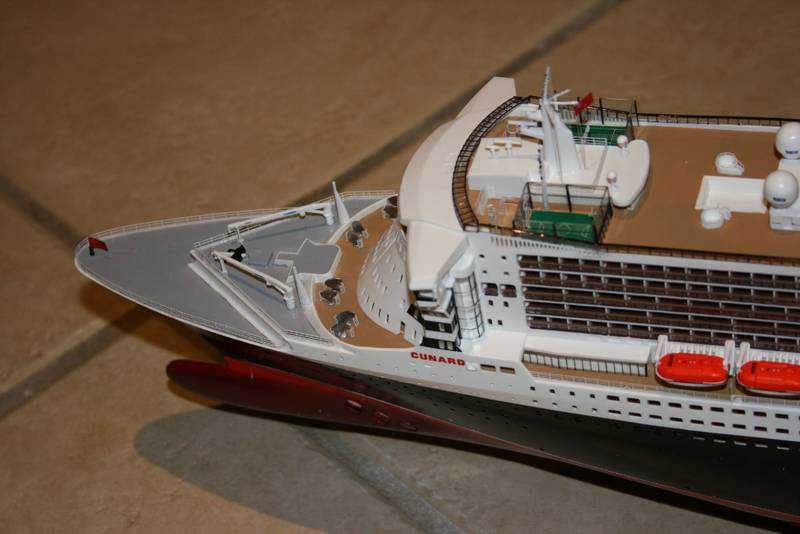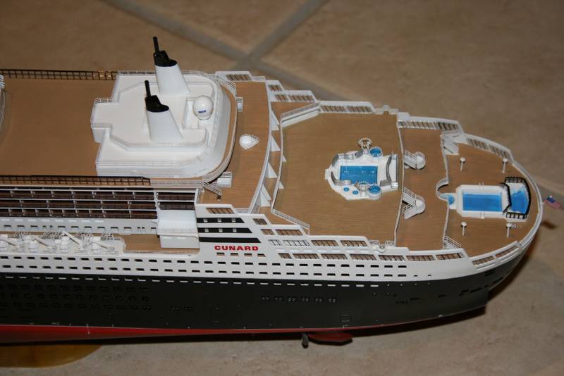 Here is my completed 1/400 Queen Mary 2 from Revell. I used the GMM PE set with the kit as the GMM railings are much finer than the railings supplied by Revell, but full marks for Revell for at least trying. I still have 200 or so pieces of deck furniture to fold bu that will have to wait for another day.