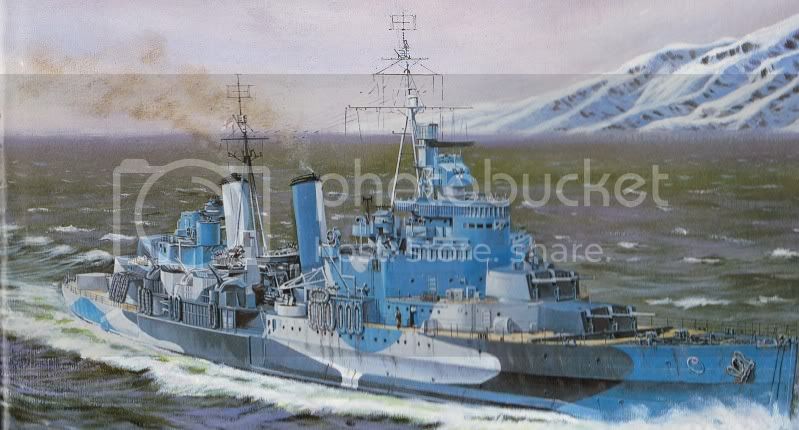 Found it, the pattern is pretty much as she is now. She was painted in that pattern when she came out repair in december 1942, after striking a mine, and remained in that patern until August 1944, so it will suit the outfit of the airfix kit.