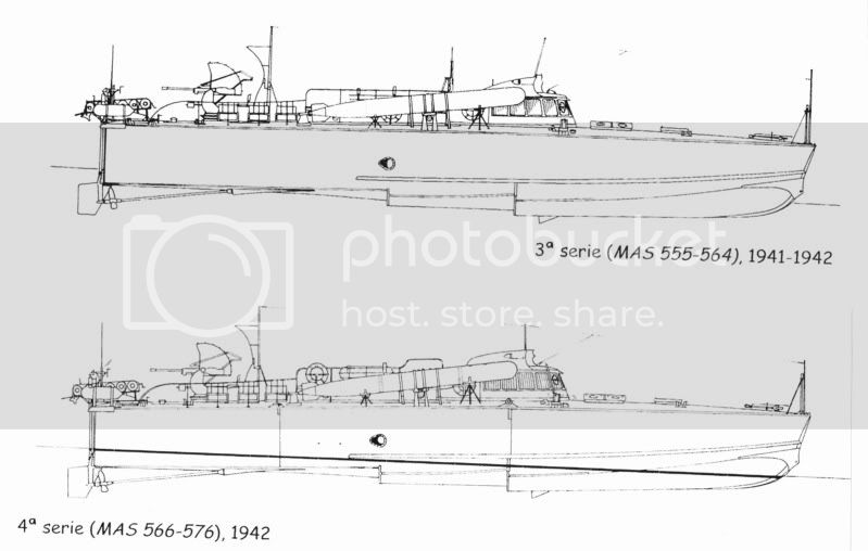 Essentially, both series are outwardly nearly identical. They have the same dimensions (18.7m x 4.7m), same engines, same armament, etc. These drawings of the two series are from an article in 'STORIA MILITARE" by Erminio Bagnasco.