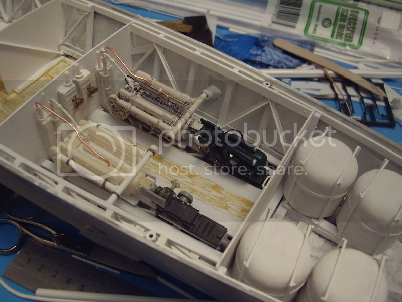 Hello Alan, You have done an impressive amount of work there. The engines look great, I particularly like the exhaust manifolds. I am still waiting for my kit, so I have been following your build closely looking for inspiration. Like you, I was planning on a nice, simple OOTB build, but now I feel the onset of an attack of scratch-building fever.