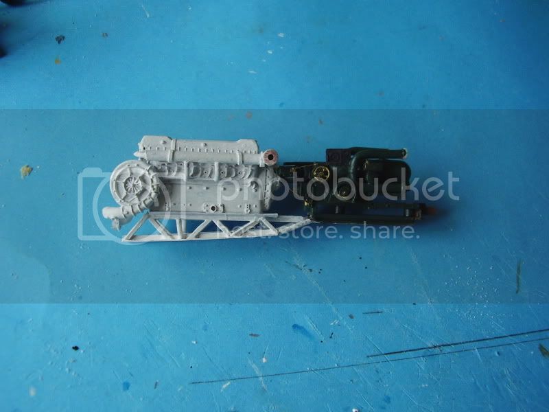 Well the build of the starboard engine is nearly done, some piping to add to the main engine and also the reduction unit but probably time for some paint. Got a basecoat on last night, there is a lot of detail on the main engine so it should look good when finished.