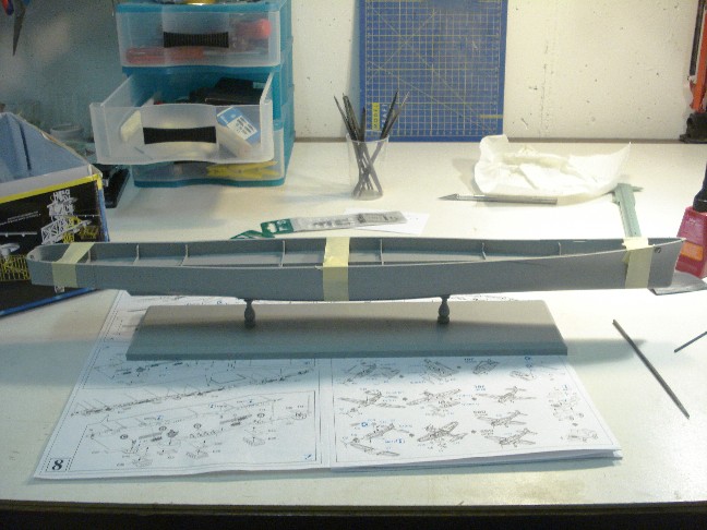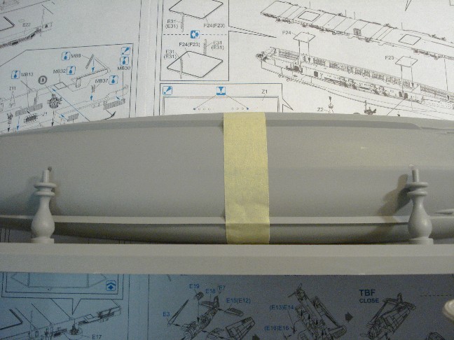 Contrary to the instructions I started with the hull first. Top is dry fitted, bottom is glued: