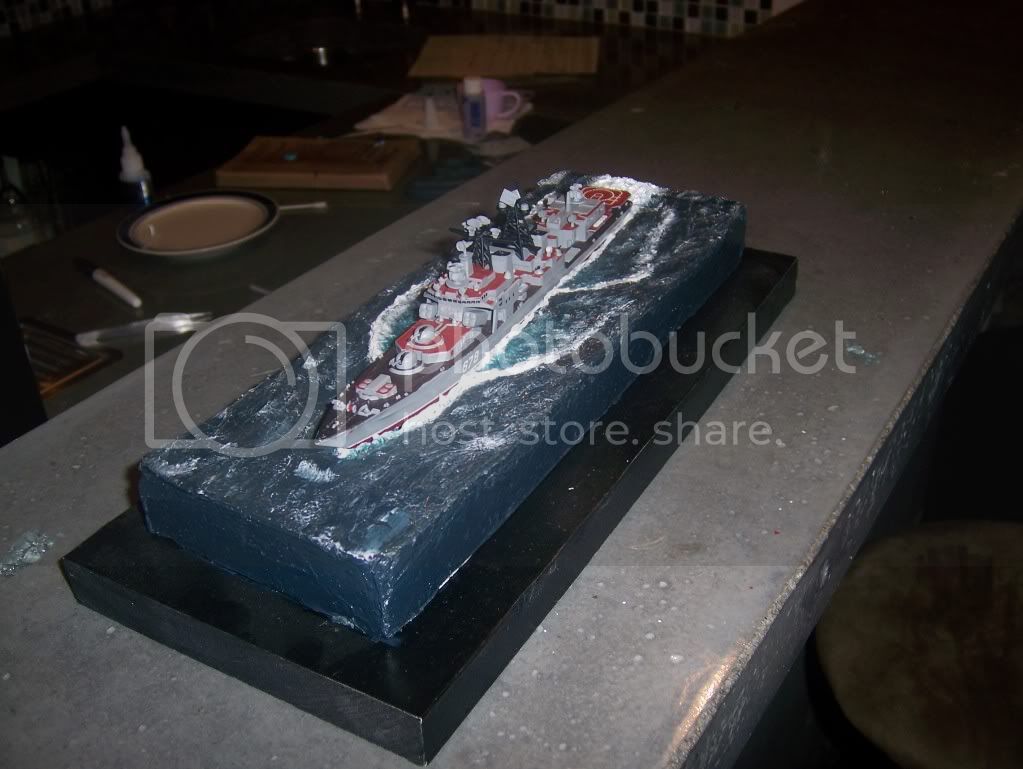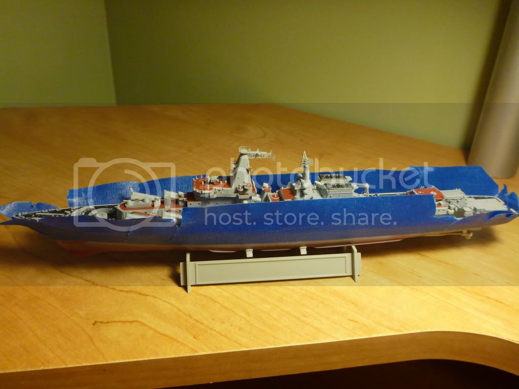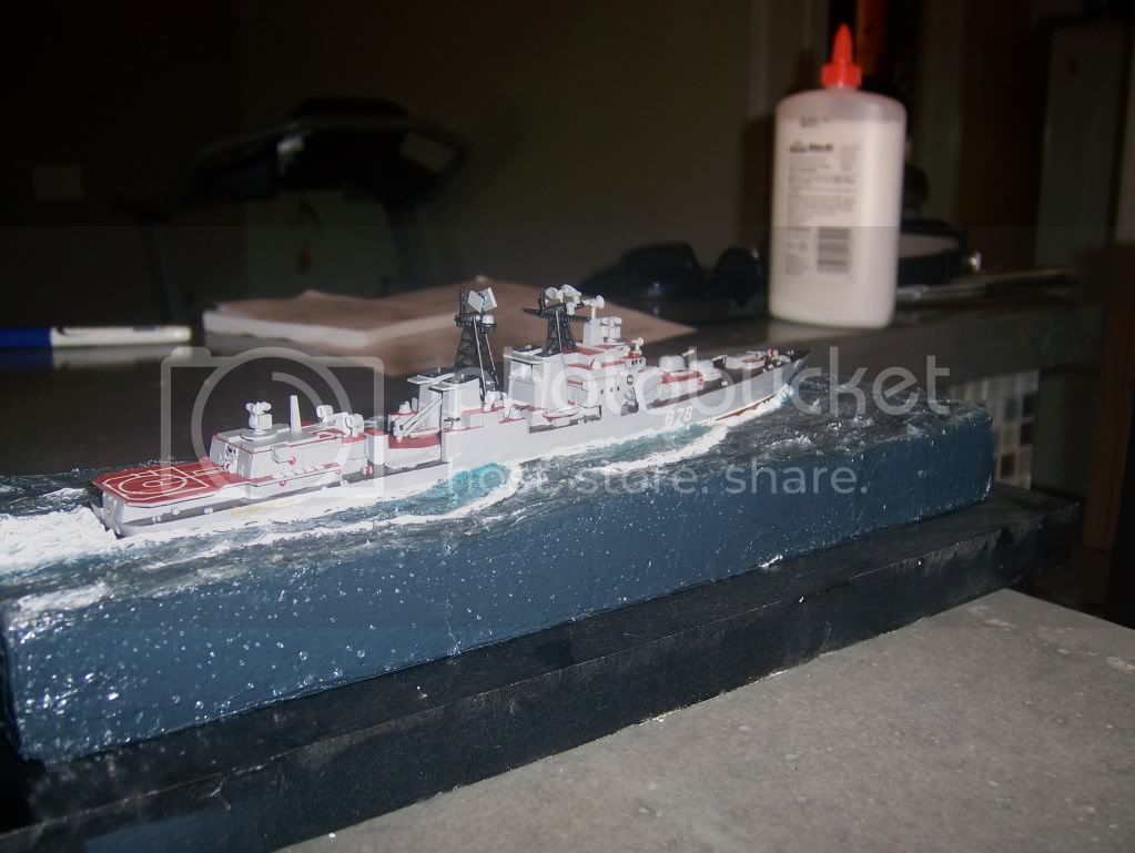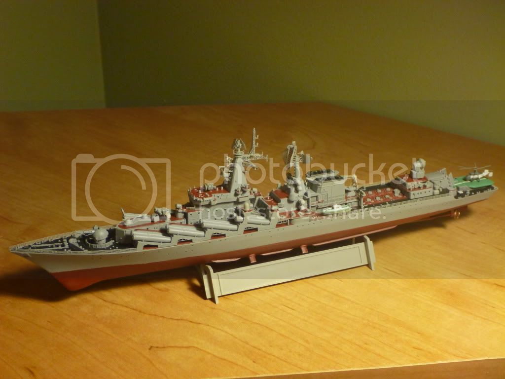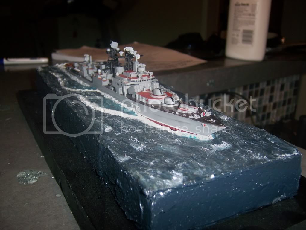 Finally, Man I thought the deadline would pass before I can upload my pics. Geez. Anyway here is my Completed1/700 Skywave Udaloy I RMS Admirial Kharmolov 678. Critiques are welcomed Sorry for flash I ll re post some later also with helo. just wanted to get in before midnight.