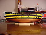 So now, some photos of the Victory.  In this first photo, it's just a pic of the starboard hull, with most of the painting completed: