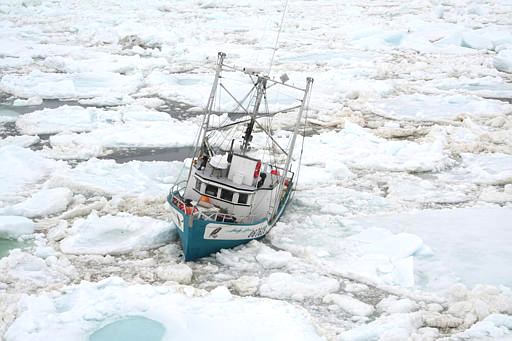 The Andy Rover is ice-bound off Newfoundland's northeast coast. To see the original high resolution photo, click here.