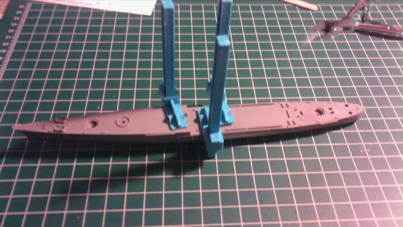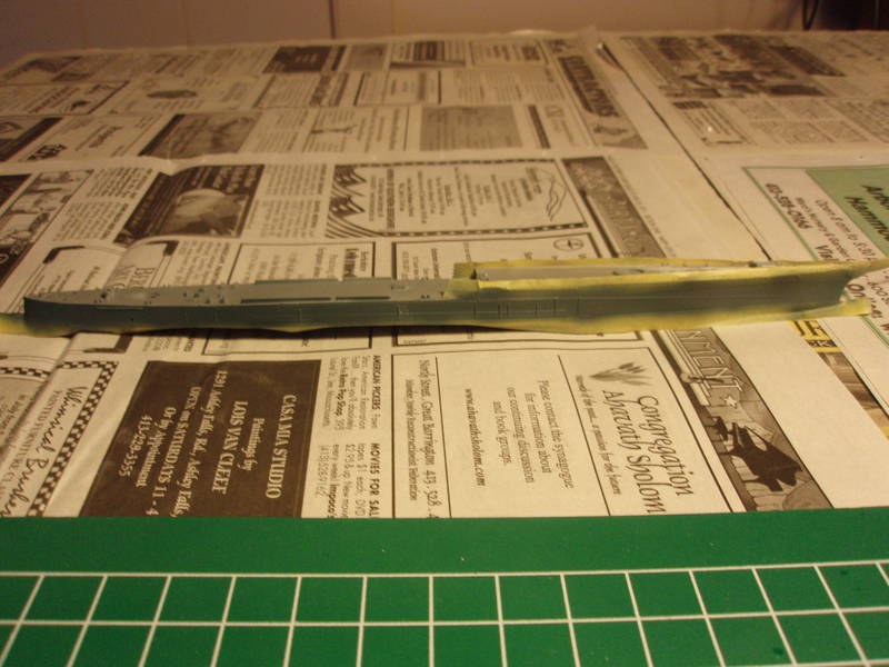Got the airbrush out today and shot the hull on The Indianapolis. I used Humbrol Navy Blue at a 90:10 ratio and it came out very nice. I will remove the tape tomorrow and see how well my masking worked.