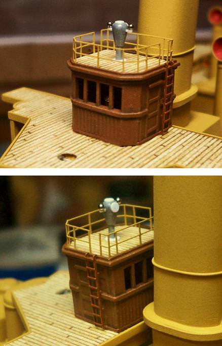 My references show that the Revell depiction of the steam launch is basically accurate, and the added detailing does help make the boat a little more convincing... but I can’t help thinking that it would still look quite at home with Theodore Tugboat and his friends in their miniature Halifax harbor!