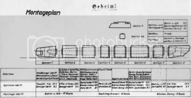 A construction in series … … .asi that was a moment to construct some ship that was reverting this situation … .asi that based on the projects deduced of Walter or rather of the type the XVIII but with a hybrid system of Batteries / diesel engine … proves is a formidable submarinos the Type the XXIst that serious the second one in quantity of constructed " 119 units " finished behind the Type the VII. But of all of them only 2 had patrol of war without having victims in his short record ¡! If one of them pipe Or 2511 a meeting with an enemy convoy composed by the cruise Norfolk and the destroyers' escort … the curious of the meeting was that the U-2511 was on returning to Berguen to deliver his ship since Germany had come to terms … .but since of boys it wanted to simulate an assault to the powerful one Managing to unload fictitiously his 6 torpedoes against the English units and to move back from his minimal distance of 500m without being detected ¡!! Imagine the surprise of the allies to he reads the binnacle and the personal diary of the captain of corvette "Adalbert Schnee" ….. Returning to the principal thread … at this point Donitz's war there was drained constant of material and of sailors like that that obtained the approval of the immediate construction of the new submarines entrusted to revert the war in favor of Germany …. It was like that that I entrust him the construction of these new ships of a revolutionary way for the German shipyards … .basado in the construcciones of the American "Liverty", was decided to construct them for sections mas precisely in 8 sections and later one would add him Ninth that serious the candle this was reducing the times of construction and there were distributed those who haceres between the different executors minimizing the misadventures only man of work would take a time of aprox 330 000 hours when his predecessors class the IXth were going almost 500 000 hours.